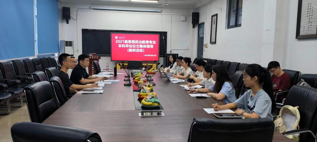 为深入践行“以本为本”育人理念,严把本科人才培养“出口关”。2025年5月22日,伟德bv国际体育思想政治教育专业在学院会议室开展了本科毕业论文集体指导教研活动。本次活动由思想政治教育系主任何为主持,2025届本科生毕业论文指导老师白云安、刘恒宇和2025届10余名本科学生参加了活动。开展此次活动旨在通过师师交流和师生交流,分享指导经验,探讨毕业论文创作中存在的不足并提出改进策略,进一步提升本科毕业论文质量。