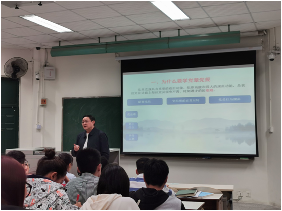 毛正强书记首先为大家回顾了党章发展历史和党章的重要时间节点及特色,强调了学习党章修订史,首先要了解党章修订的时代背景,从而进一步了解中国共产党的奋斗史,深刻理解党章作为党内大法,对党组织正常运转、凝聚党员、规范党员行为起到的重要作用。紧接着结合我们学生党员工作特色、专业特性,提出作为学生党员应如何争当新时代先锋。最后,强调作为学生党员,应从党章学习中明确党史学习的重要性,正确看待党波澜壮阔的发展历史;从知党章中明确党员应如何行使权利、履行义务,真正做到全心全意为人民服务。授课过程中,毛正强书记与党员同志们充分互动,交流心得,分享经验,提高了党员同志们学习热情,让本次党课学习真正的入心入脑。
