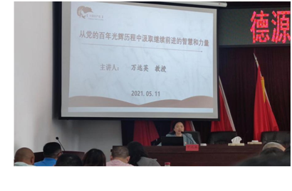 万远英教授以中华民族从东亚病夫到站起来、富起来、强起来的历程为主线进行深入浅出地讲解,用鲜活的人物事例、浅显易懂的朴实语言,带领与会人员回顾共产党的历史,正确认识中国共产党百年奋斗的光辉历程和历史性贡献,深刻把握开展党史学习教育的重点。大家回顾了中国共产党风雷激荡的百年历史,感悟了中国共产党从建党大业的开天辟地到立国大业的改天换地、从富国大业的翻天覆地到强国大业的惊天动地的非凡历程与伟大成就,体会了流转百年、跨越时空的系列伟大精神。