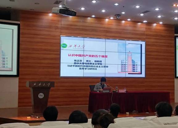 陈正芬副教授首先带领同学们明确了研究中国共产党,实际上就是抓住了研究中国的核心,就是找到了中国“从哪里来”“到哪里去”问题的钥匙。随后,从理论维度、历史维度、人民维度、文化维度、实践维度的六个维度对中国共产党展开论述,深刻阐述了中国共产党为什么“能”。