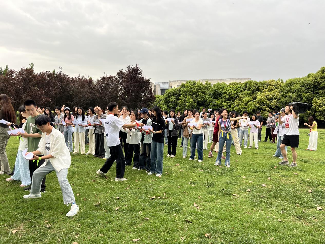 在紧张激烈的竞赛中形成创先争优意识,锻炼团结协作的能力。本次活动设计紧扣“思想引领+团队协作”双主线展开。彝族达体舞作为破冰环节,让青年学子在民族韵律中感受文化传承;“接力传乒乓球”考验团队协作精度,培养系统思维;“两人三足”竞技强化沟通默契,彰显合作价值;拔河比赛、反口令挑战等环节则深化集体意识,通过游戏互动,增加了同学们之间的默契,增进了友谊。