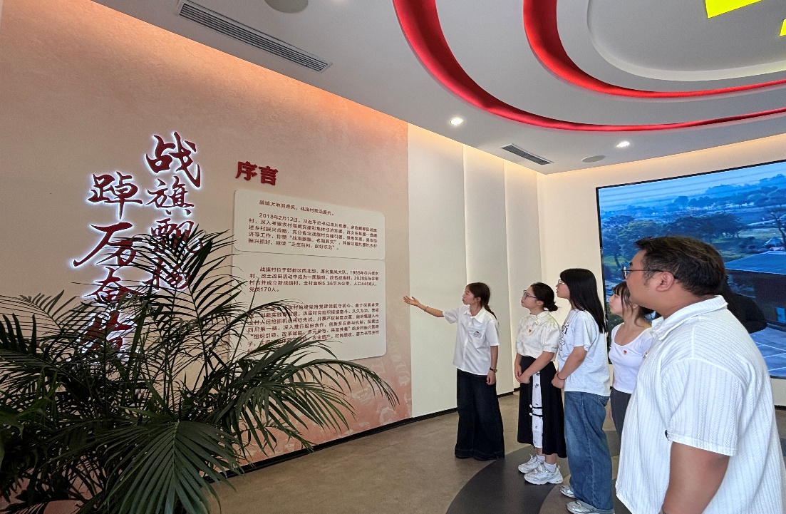 随后,党员们参观了村史馆,详细了解了战旗村从传统农业村落发展成为全国闻名的乡村振兴示范村的历史变迁。在特色产业发展展区,大家看到战旗村依托党建引领,积极探索特色产业发展之路,通过发展现代农业、乡村旅游等产业,不仅壮大了村集体经济,还让村民的生活水平得到了显著提升。从土地集中经营到品牌农业打造,从农村电商发展到乡村文旅融合,战旗村的创新实践让党员们深受启发。