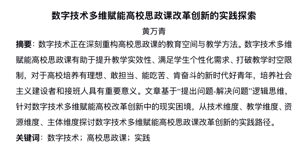相关资料:论文《数字技术多维赋能高校思政课改革创新的实践探索》摘要