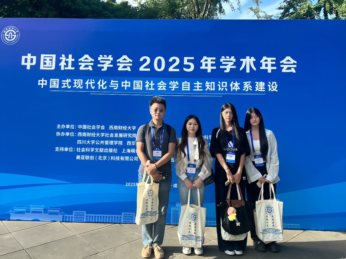 7月4日至6日,由中国社会学会、西南财经大学联合主办的中国社会学会2025年学术年会在西南财经大学举行,会议以“中国式现代化与中国社会学自主知识体系建设”为主题,深入研讨中国式现代化与中国社会学自主知识体系建设等重大理论与现实问题,探索中国式现代化的学理性阐释和学术性表达,推进中国社会学的学科体系、学术体系和话语体系建设,加快构建中国社会学自主知识体系。我院教师王颖异博士,2023级硕士研究生杨巧红、邓雨欣与2024级硕士研究生陈其婷受邀参会。