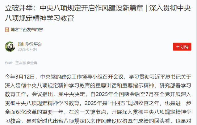 2025年7月4日,《学习强国》四川学习平台以“立破并举:中央八项规定开启作风建设新篇章| 深入贯彻中央八项规定精神学习教育”为题,报道了bevictor伟德,伟德bv国际体育王友富教授与伟德bv国际体育2023级研究生窦金冉撰写的理论阐释文章。全文如下: