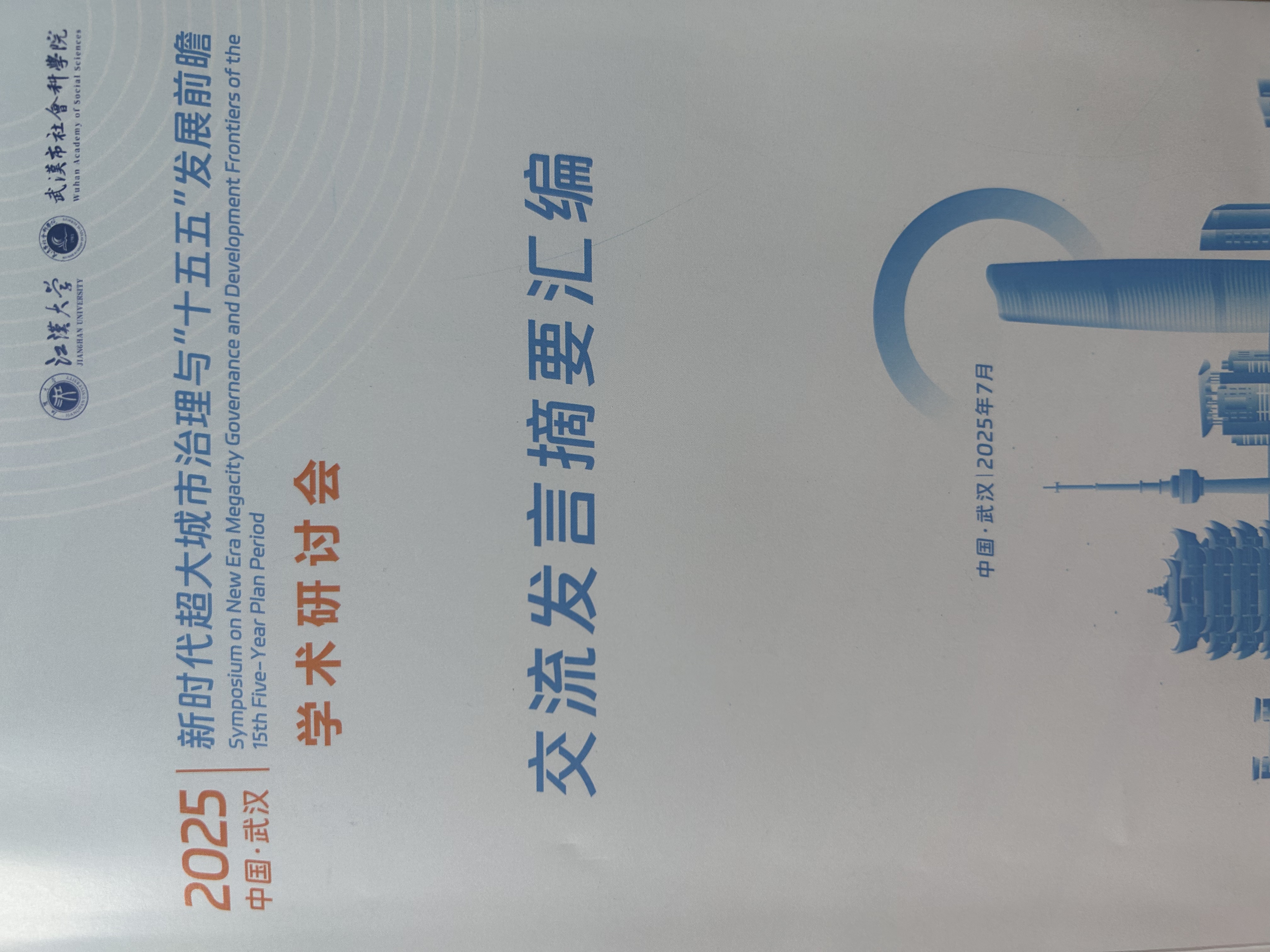 2025年7月14日,由江汉大学、武汉市社会科学院、武汉市社会科学界联合会、武汉市人民政府决策咨询委员会联合主办的新时代超大城市治理与“十五五”发展前瞻学术研讨会及武汉超大城市治理研究院揭牌仪式在江汉大学举行。来自全国的院士、专家、学者等200余人共聚一堂,聚焦“新时代超大城市现代化治理新路子”这一主题,围绕治理理论与实践创新、韧性城市建设、智慧治理赋能基层治理创新、空间结构优化、法治保障、公共服务改善、风险防范化解等领域的研究进行了深入交流探讨。我院2023级马克思主义理论研究生马梓昕受邀参会。