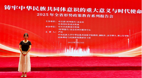 为深入学习贯彻习近平文化思想,扎实抓好形势政策和基本国情教育,7月25日上午,由中宣部《时事报告》杂志社、中共四川省委宣传部主办的2025年全省形势政策教育系列宣讲活动在四川长征干部学院甘孜泸定桥分院召开。本次活动参与人员涵盖广泛,包括省直 相关部门负责同志、各市(州)党委宣传部分管副部长及业务科(处)负责同志、相关研究(培育)基地负责同志、甘孜州和泸定县有关部门人员、当地大中小学思政课教师及学生代表、社会各界代表等,总计530人。bevictor伟德铸牢中华民族共同体研究基地、伟德bv国际体育教师代表古云惠参加了此次活动。