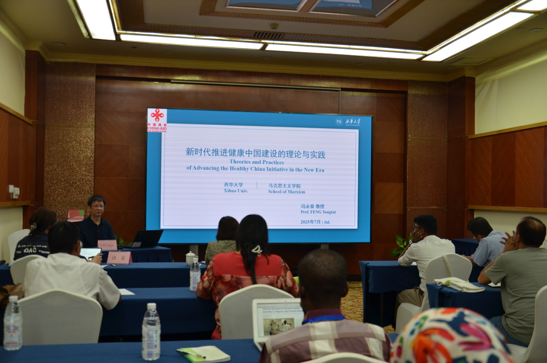 7月25日,学院院长冯永泰教授应邀为研修班授课。冯永泰教授以“健康中国的理论与实践”为主题,以习近平总书记关于健康中国重要论述为主要内容,结合新时代卫生健康工作宣介习近平新时代中国特色社会主义思想,并与培训学员就公民健康素养、银发经济、构建人类卫生健康共同体等问题进行了交流。
