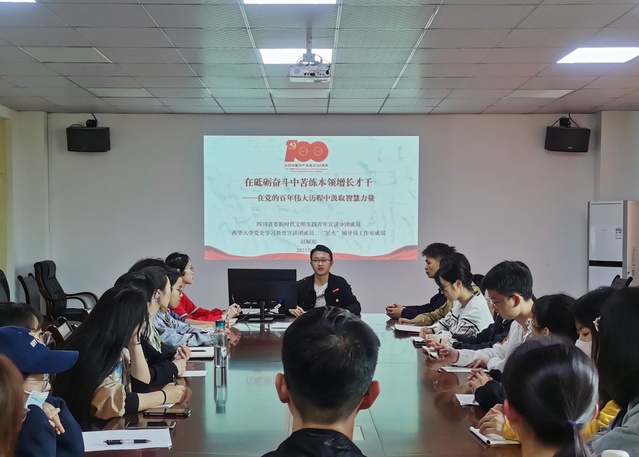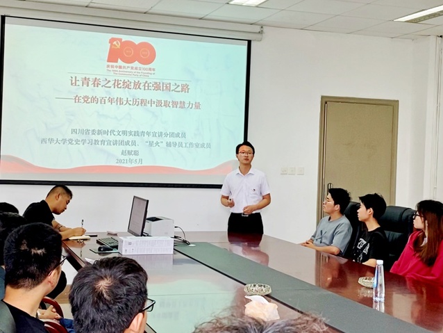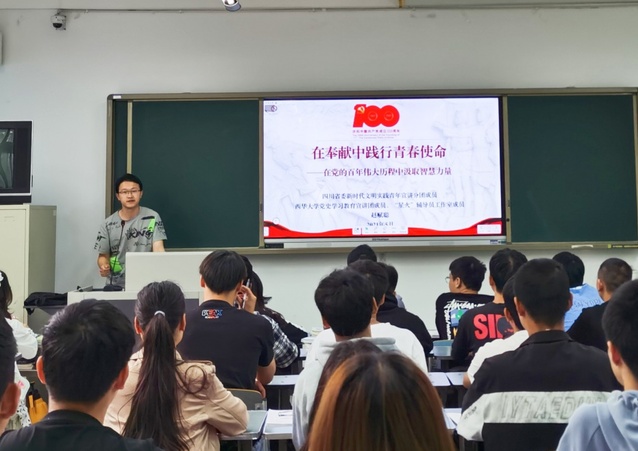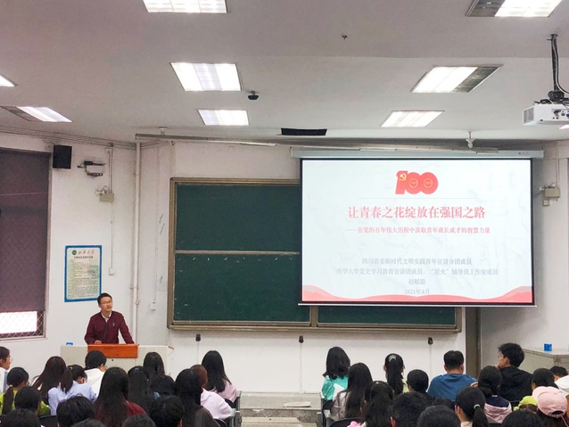为深入学习贯彻落实习近平总书记在党史学习教育动员大会上的讲话精神,推动党史学习教育走深走实,迎接中国共产党成立100周年,四川省委宣讲团新时代文明实践青年宣讲分团成员、四川省第三届“青马工程”高校班成员、bevictor伟德党史学习教育宣讲团成员赵赋聪,4.20日-5.27日期间在bevictor伟德、成都东软学院、四川铁道职业学院为三地学生党员、学生骨干、团员青年近700人开展专题宣讲报告。