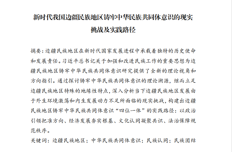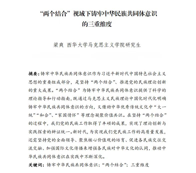 下午,青年学者们各从不同视角对铸牢中华民族共同体意识进行了深刻剖析,开启了一场学术思想的盛宴。其中,我院2023级研究生梁路路撰写的论文《新时代我国边疆民族地区铸牢中华民族共同体意识的现实挑战及实践路径》、2023级研究生梁爽所撰写的论文《 “两个结合”视域下铸牢中华民族共同体意识的三重维度 》被收入论文集。