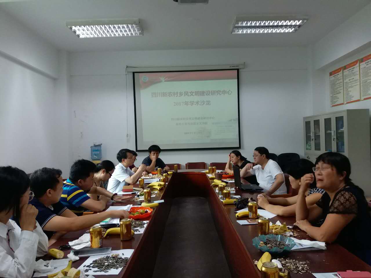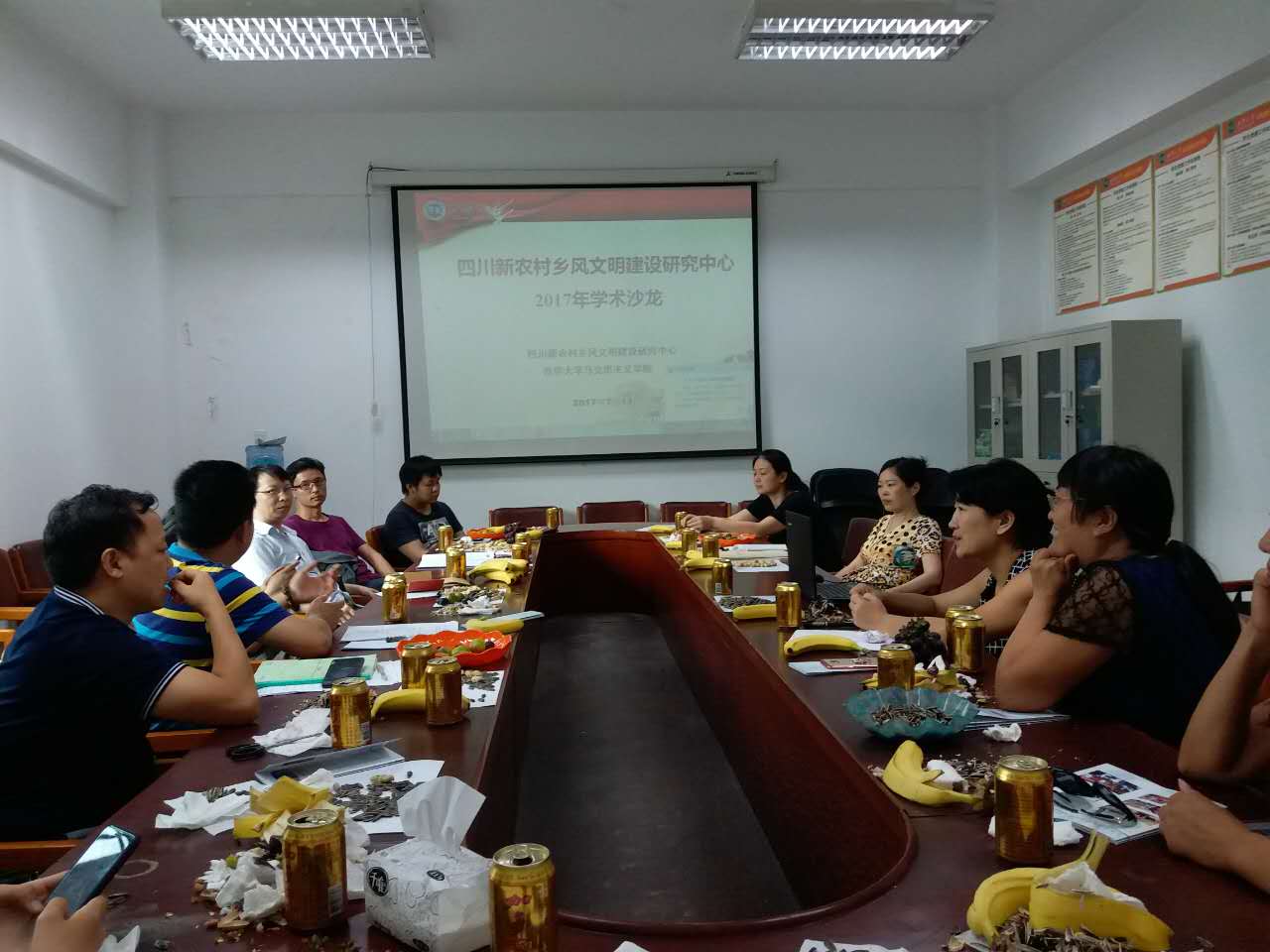 四川新农村乡风文明建设研究中心各位专家学者围绕研究课题分别作了主题发言。刘英副教授以理县为例,交流了少数民族地区乡风文明建设研究情况。王贝副教授分享了在成都城乡统筹背景下的基层治理研究。封德平教授交流了在传统文化与乡风文明建设研究方面的心得。张珍华副教授和罗鈺副教授交流了在特色乡村、特色古镇研究方面的一些观点。庹永博士和徐佐彦副教授也围绕自己的研究领域畅谈了自己的研究心得。万远英教授不仅就自己的研究课题“民俗文化:新农村乡风文明建设”与大家进行了分享和探讨,而且还就在国家社科基金申报中如何优选题目、组织团队、精心打造,从而提高申报命中率和大家进行了深入探讨和交流。