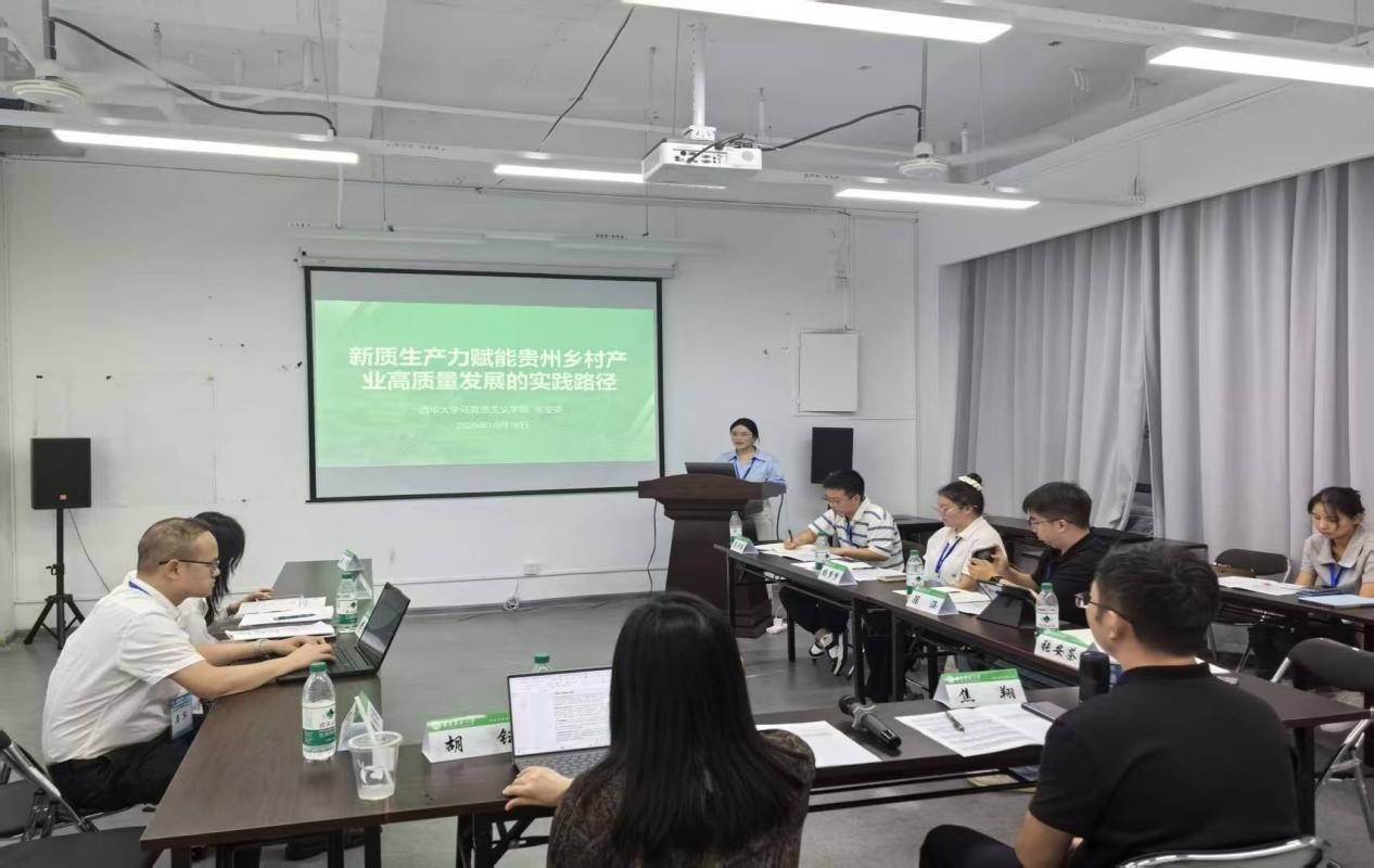 18日下午,论坛分设“新质生产力促进农业绿色转型”“农业新质生产力赋能乡村全面振兴”“农业生态产品价值实现”“农业新质生产力与现代农业产业体系”四个论坛,分别从驱动力、目标、路径和载体四个维度展开深入研讨,旨在凝聚共识、探索路径,为农业现代化注入强劲新动能。其中,我院2024级研究生张安茶在平行论坛四,即“农业新质生产力与现代农业产业体系”就《新质生产力赋能贵州乡村产业高质量发展的实践路径》作报告。报告指出,新质生产力的培育与应用是推动贵州乡村产业高质量发展的重要动力,应充分发挥新质生产力在技术创新、绿色发展和产业融合方面的引领作用,构建“生态优先、绿色发展”的乡村产业体系。