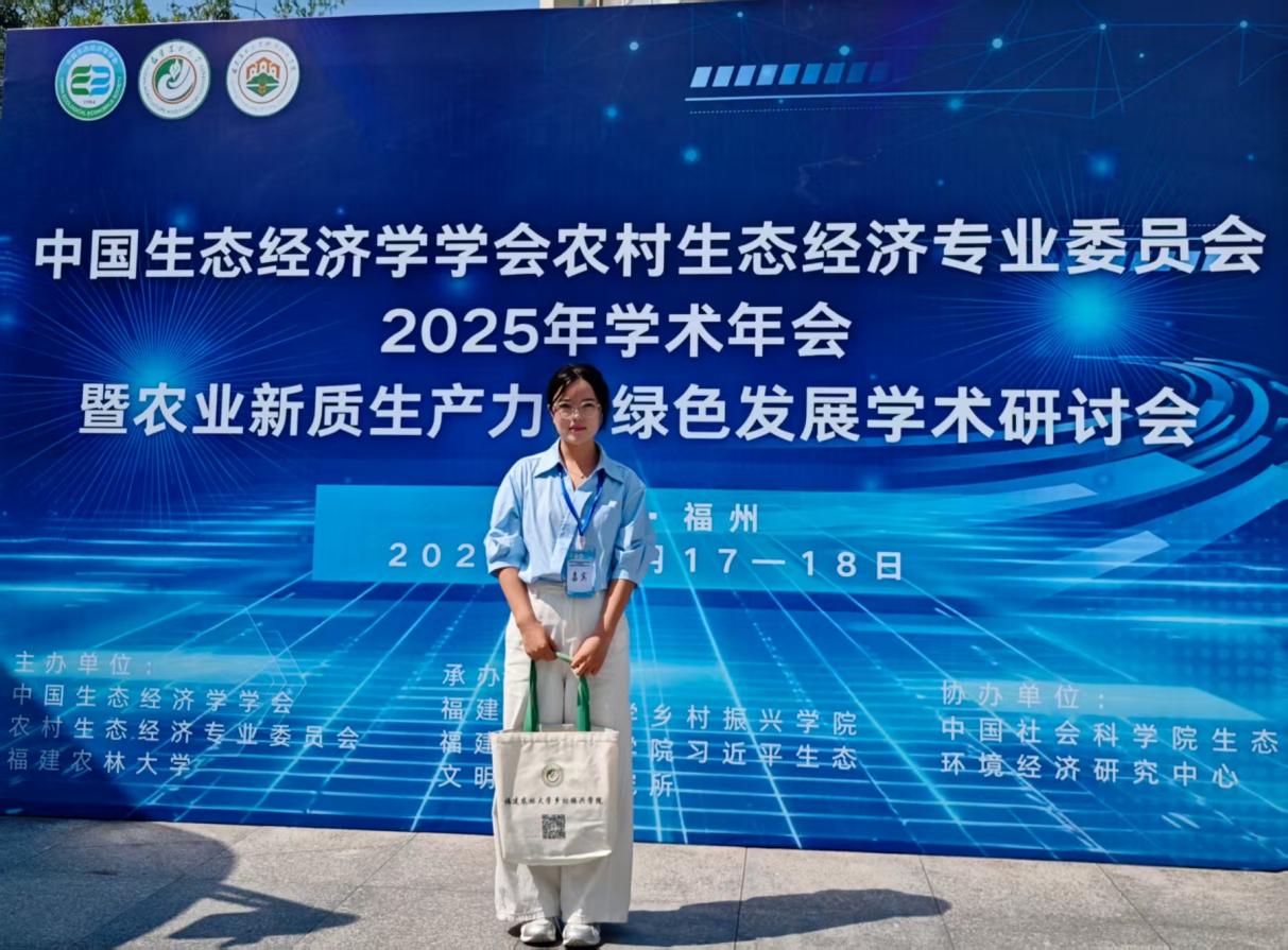 10月18日,由中国生态经济学学会、农村生态经济专业委员会及福建农林大学联合举办的“中国生态经济学学会农村生态经济专业委员会2025年学术年会,暨农业新质生产力与绿色发展学术研讨会”在福建福州隆重召开。此次会议聚焦“农业新质生产力与绿色发展”主题,汇聚全国生态经济学领域的专家学者、青年学者及硕博士研究生,共同探讨新时代背景下农业绿色转型、乡村振兴与生态经济发展的新思路与新实践。我院2024级马克思主义理论专业研究生张安茶受邀参加此次研讨会。