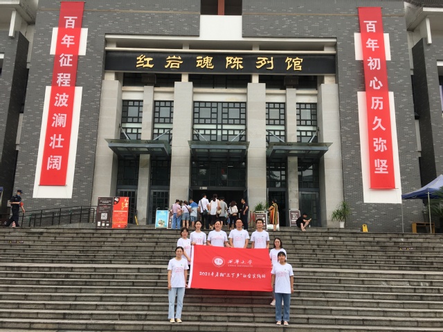 为缅怀革命先烈、纪念革命先驱为建立新中国做出的伟大贡献,为民族团结提升自身素质,为呼吁和平贡献自身力量的号召,2021年7月10日,bevictor伟德,伟德bv国际体育暑期“三下乡”社会实践团——“红色革命精神宣讲团”在党委副书记李欣老师和团委书记杜靖老师的带领下,志愿者们来到了重庆红岩魂陈列馆。该馆陈列展览由两部分组成,分别是11·27大屠杀半景画馆、文物展馆和图片,其中图文展馆又分别包含七个不同的主题——“禁锢的世界”、“从来壮烈不贪生,许党为民万事轻”、“愿以我血献后土,换得神州永太平”、“失败膏黄土成功济苍生”、“血与泪的嘱托”、“烈火中永生”和“烈士血凝万代心”。