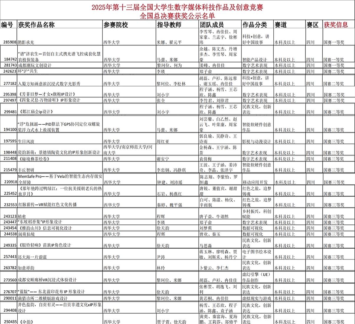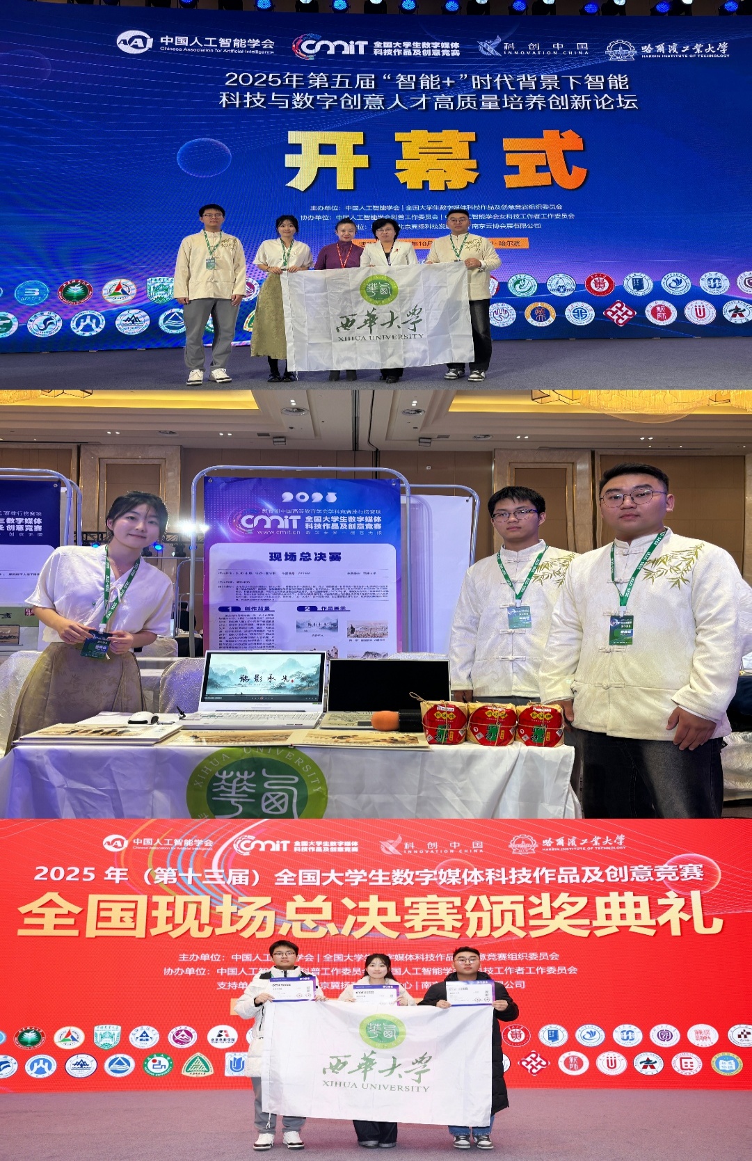 此次竞赛佳绩的取得,既是学院深耕学生全面发展理念的生动实践,也是推动多学科交叉融合育人模式的显著成效。不同学院在指导过程中打破学科壁垒,将人文创意、工程技术与智能科技深度结合,既锤炼了学生的专业技能,更培养了其跨界思维与创新能力。未来,学院将坚守育人初心,深化多学科交叉融合人才培养,优化跨学院协作,搭建更广阔实践创新平台,鼓励学生在科技人文、理论实践中探索突破;聚焦“智能+”需求,强化学生综合素养与核心竞争力,为培养兼具创新、实践、社会责任感的复合型人才筑基,助力学生在数字创意、科技创新领域发展,为行业进步、文化传承注入西华力量。