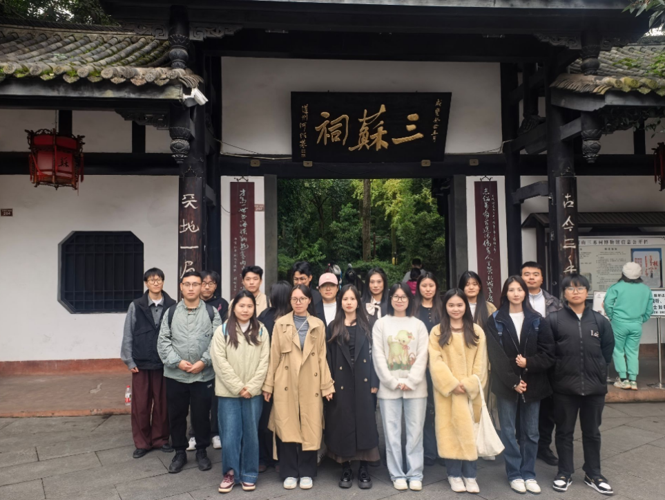 下午,师生们走进全国重点文物保护单位三苏祠。这座占地 65000平方米的古建筑群,作为国内规模最大、保存最完好的三苏纪念祠堂,处处浸润着中华优秀传统文化的底蕴。在展厅与庭院间,师生们探寻苏洵、苏轼、苏辙父子的生平事迹与文学成就,体悟 “一门三父子,都是大文豪” 的文化魅力,更从 “读书正业、孝慈仁爱” 的苏家家训中汲取精神养分。在讲解员的现场解读下,研究生们认真思考了在推进农业现代化的同时,要注重挖掘文化自信与乡村振兴的内在联系,以维护好、传承好本土优秀农耕文化。