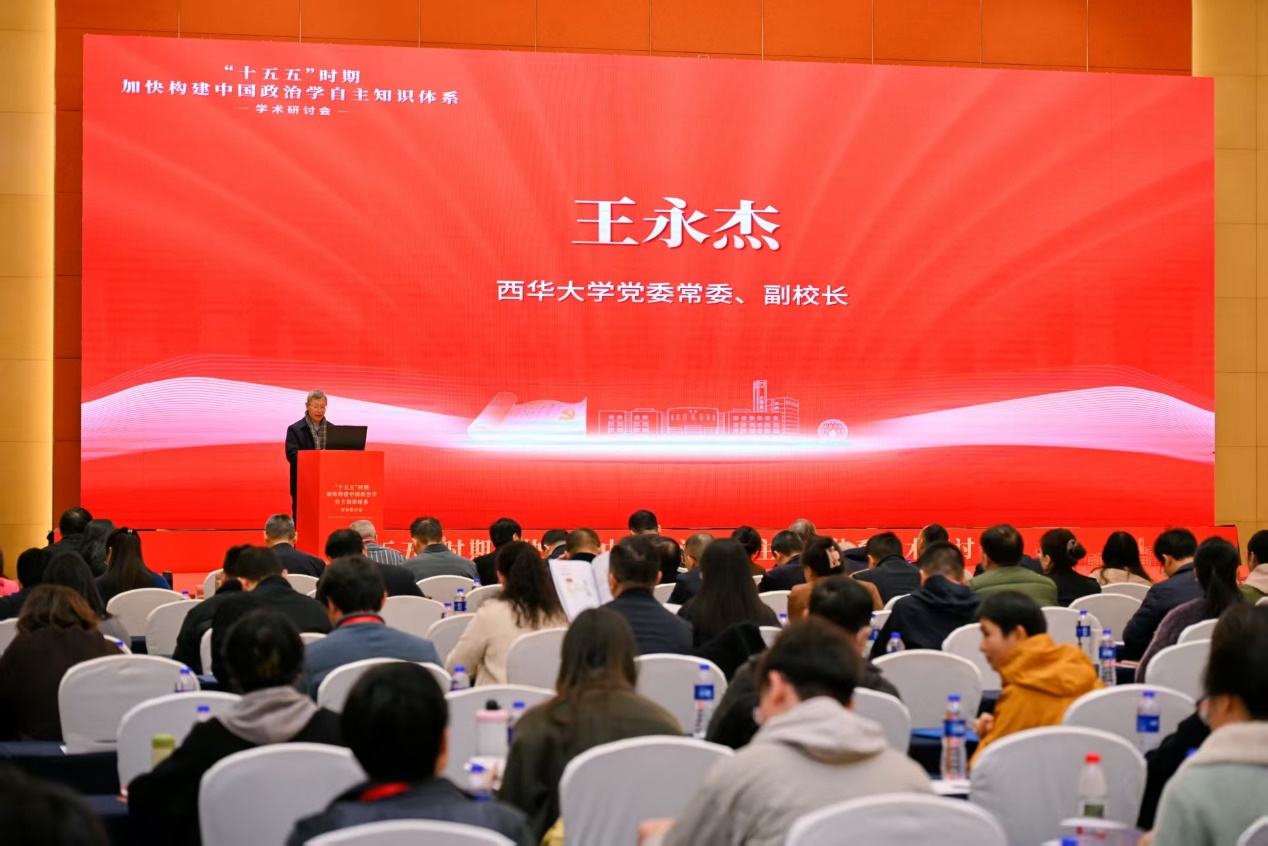 开幕式上,王永杰代表学校向与会专家学者表示诚挚欢迎,向学术研讨会和四川省政治学会年会的召开表示热烈祝贺。他说,政治学研究肩负着解码中国之治、阐释中国之理、弘扬中国之道、建构中国之学的光荣使命。本次研讨会汇聚了国内政治学领域的顶尖智慧,围绕“加快构建中国政治学自主知识体系”等重要议题展开研讨,不仅是我国政治学界的一次思想盛宴,更是推动相关领域前沿研究的宝贵契机。希望专家学者能够畅所欲言、分享真知灼见,共同为构建中国特色政治学学科体系、学术体系、话语体系贡献智慧和力量。