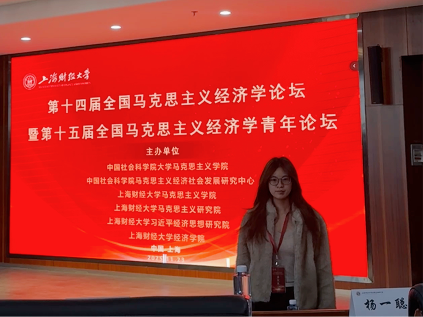 2025年11月22日,由中国社会科学院大学伟德bv国际体育、中国社会科学院马克思主义经济社会发展研究中心、上海财经大学伟德bv国际体育、上海财经大学马克思主义研究院、上海财经大学习近平经济思想研究院、上海财经大学经济学院联合主办,中国社会科学院马克思主义研究院、马克思主义原理研究部承办的“第十四届全国马克思主义经济学论坛暨第十五届全国马克思主义经济学青年论坛”在上海成功举行。我院2023级马克思主义理论专业研究生牛冰倩受邀参加此次研讨会。