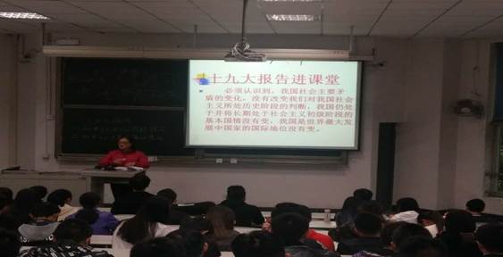 马克思主义院长万远英教授在课堂上,带领同学们一起深入学习讨论了十九大报告精神, 以全新的理论概括、战略思想和行动纲领,结合博大渊深的文化底蕴,讲述习近平新时代中国特色社会主义思想的精神实质和丰富内涵。