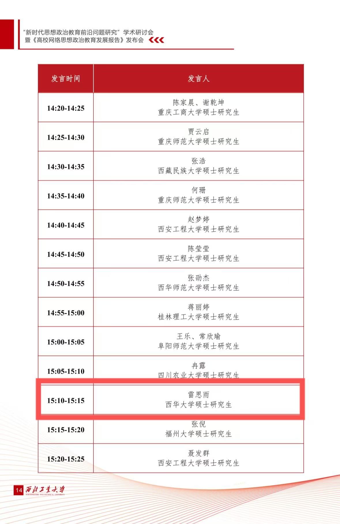 2025年11月29日,由教育部高校思想政治教育工作创新发展中心(西北工业大学)、西北工业大学伟德bv国际体育举办的“新时代思想政治教育前沿问题研究”学术研讨会暨《高校网络思想政治教育发展报告》发布会,在陕西省西安市西北工业大学顺利召开。来自中央财经大学、电子科技大学、西北工业大学、陕西科技大学、北京航空航天大学、武汉大学等高校的百余位国内知名专家学者、青年学者及优秀硕博研究生参加会议。我院2024级马克思主义理论专业硕士研究生雷思雨受邀参加此次会议。