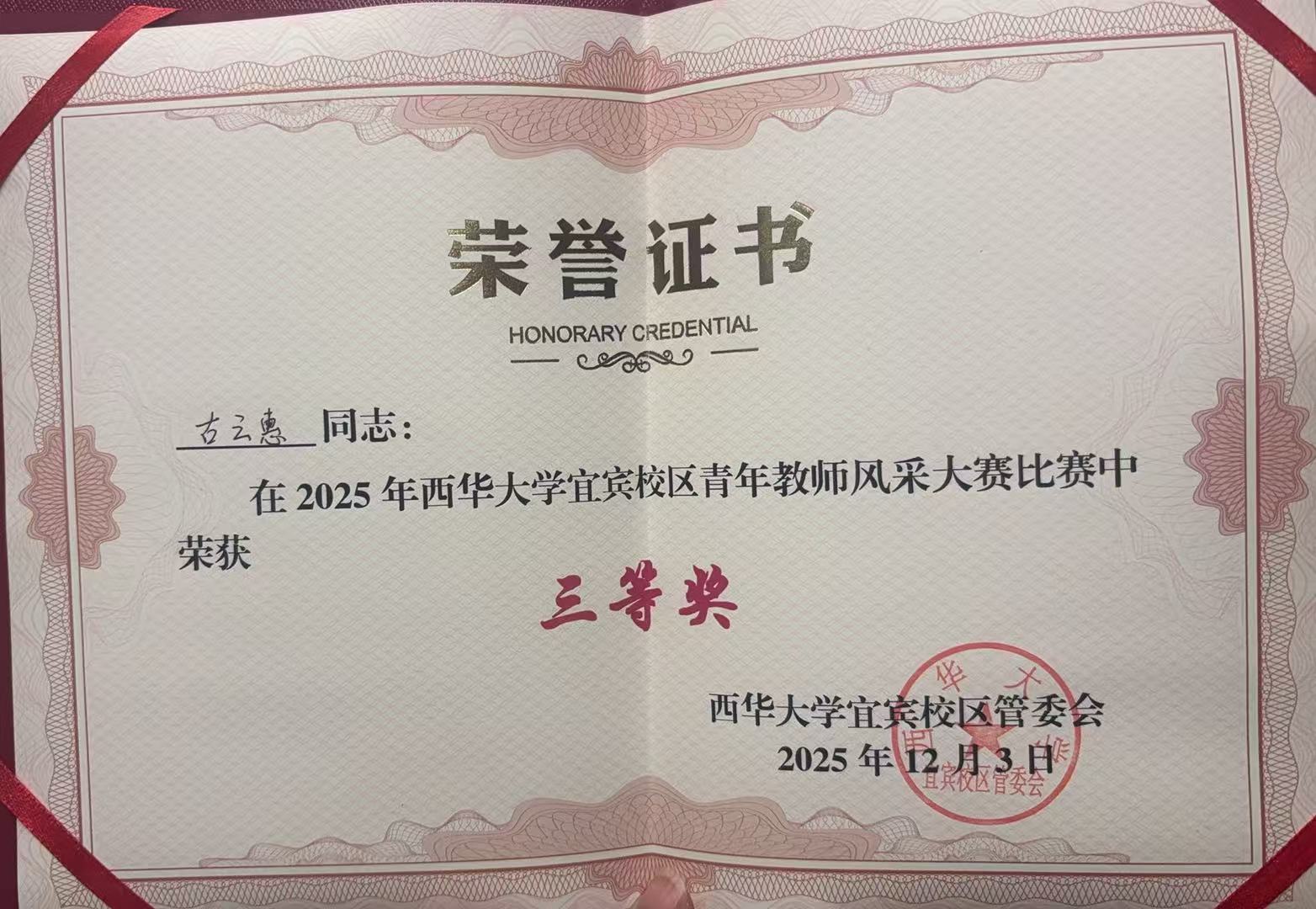 在比赛中,古云惠教师坚持以学生为中心,结合新时代青年的认知规律与思想特点,以社会主义核心价值观中的“富强”为切入点,通过深入浅出的讲解和丰富的案例展示,引导学生深刻理解富强对于国家和个人的重要性以及个人应该如何增强践行富强的自觉,其教学设计将“富强”从抽象的概念转化为具体的感知,既有理论深度,也有生活温度,得到了评委组的一致认可,最终在本次比赛荣获三等奖。
