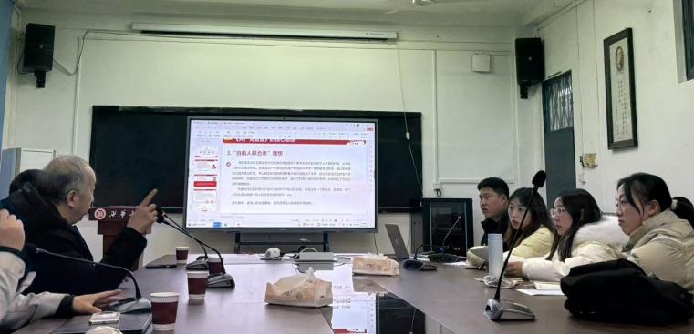 本次活动主要包括同学分享和专家点评两个环节。在同学分享环节,6位同学结合经典文本,分别从不同角度阐述了自己对党的二十届四中全会精神的理解。如周涛同学以《家庭、私有制和国家的起源》为经典文本,分享“两种生产:新质生产力的理论基础”,阐释两种生产为新质生产力提供理论借鉴。马家佳同学以《资本论》为经典文本,阐释党的二十届四中全会提出的“促进城乡融合发展”、“推动城乡要素双向流动”正是马克思主义城乡关系理论的当代发展。在专家点评环节,4名老师提出不同的建议。如屈理兵老师指出,“物质生产最终要服务于人的生产”,余声启老师指出,“马克思在《资本论》中对城乡对立关系展开了深刻阐释,但并没有直接提出要通过打破要素壁垒、实现资源优化配置破解城乡差距,这实质上是马克思主义基本原理同中国具体实际相结合的理论创新与实践发展。因而,对经典著作的研读,应坚持立足原著本身的阐释原则,准确把握其理论边界。”