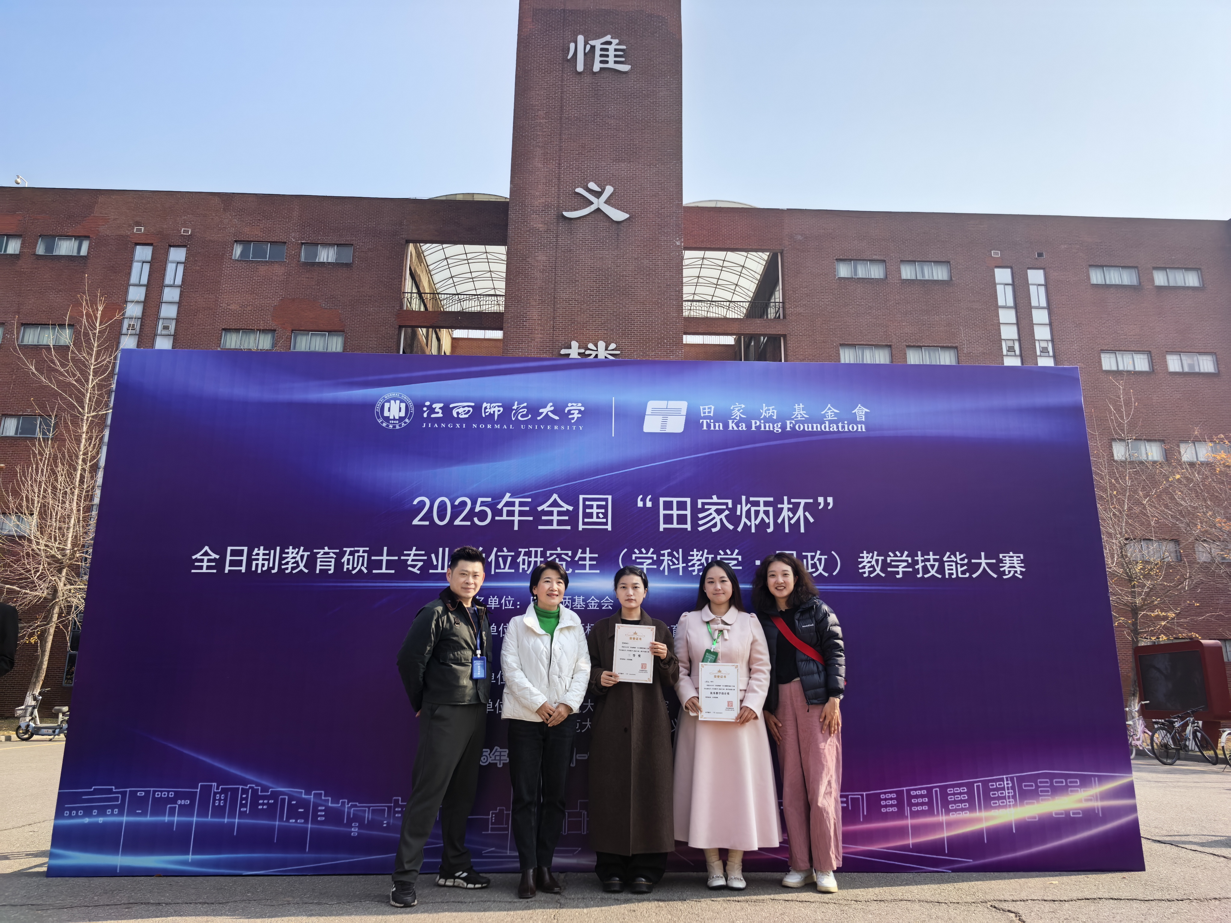 12月5日至7日,2025年全国“田家炳杯”全日制教育硕士专业学位研究生(学科教学·思政)教学技能大赛暨全国高校学科教学(思政)专业学位点内涵建设座谈会在江西师范大学举行。来自华东师范大学、华中师范大学、东北师范大学等全国90余所院校的254名学生入围决赛。经过激烈角逐,我院2024级研究生邬珊荣获三等奖,2024级研究生于梦浩荣获优秀教学设计奖。