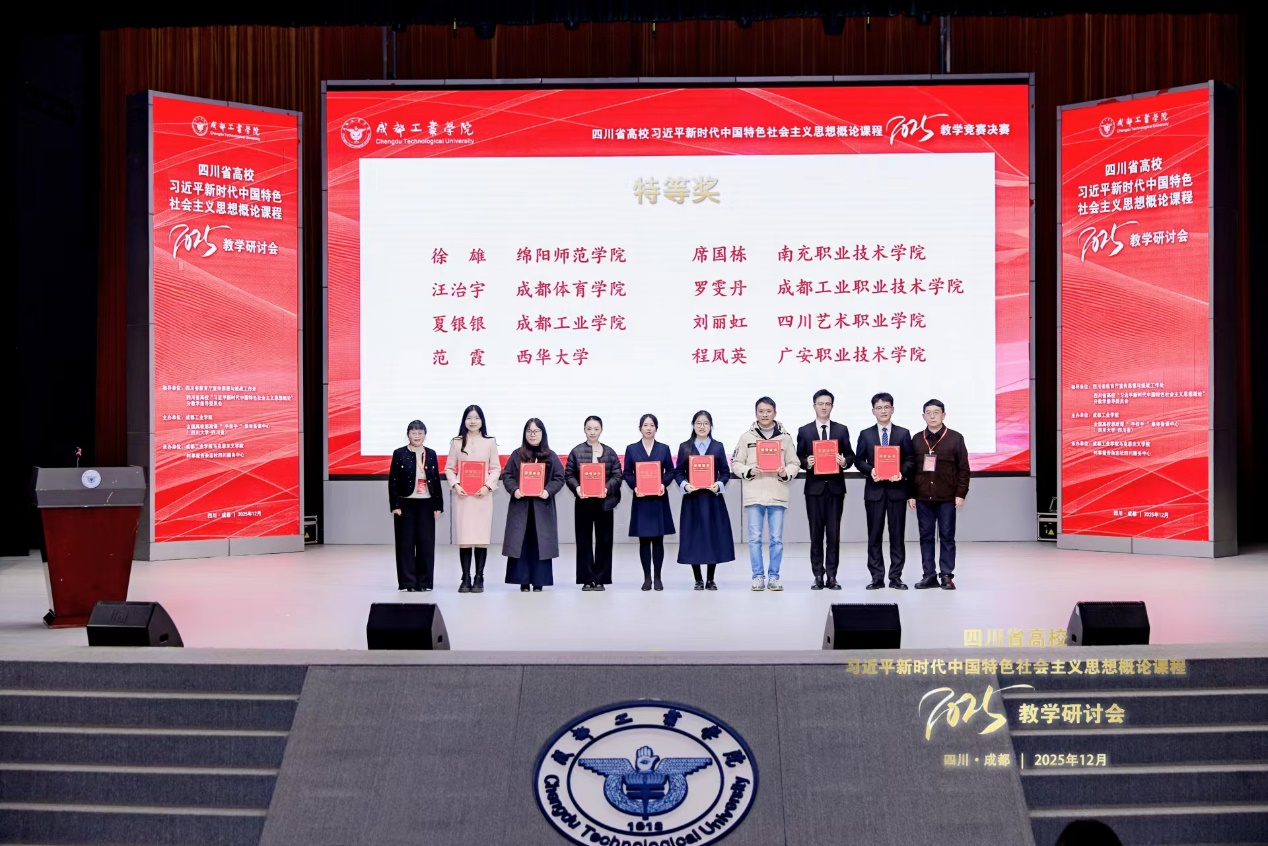 2025年12月6日,四川省高校“习近平新时代中国特色社会主义思想概论”课程2025年教学研讨会在成都工业学院郫都校区成功举办。四川省教育厅宣传思想与统战工作处处长李大鹏,四川省高校“概论”课教学指导委员会主任委员李栓久教授,四川省高校思想政治教育研究会思想政治理论课研究分会会长唐晓勇教授,成都工业学院党委副书记冯瑛教授等领导专家出席会议并作发言。来自省内外90余所高校的伟德bv国际体育负责人、思政课骨干教师及专家学者齐聚一堂,旨在通过交流与竞赛,共同推动思政课教学改革与发展。我院院长冯永泰教授带队,范霞老师进行教学展示,新进教师任丹丹、杨秦文、彭娜到会观摩学习。