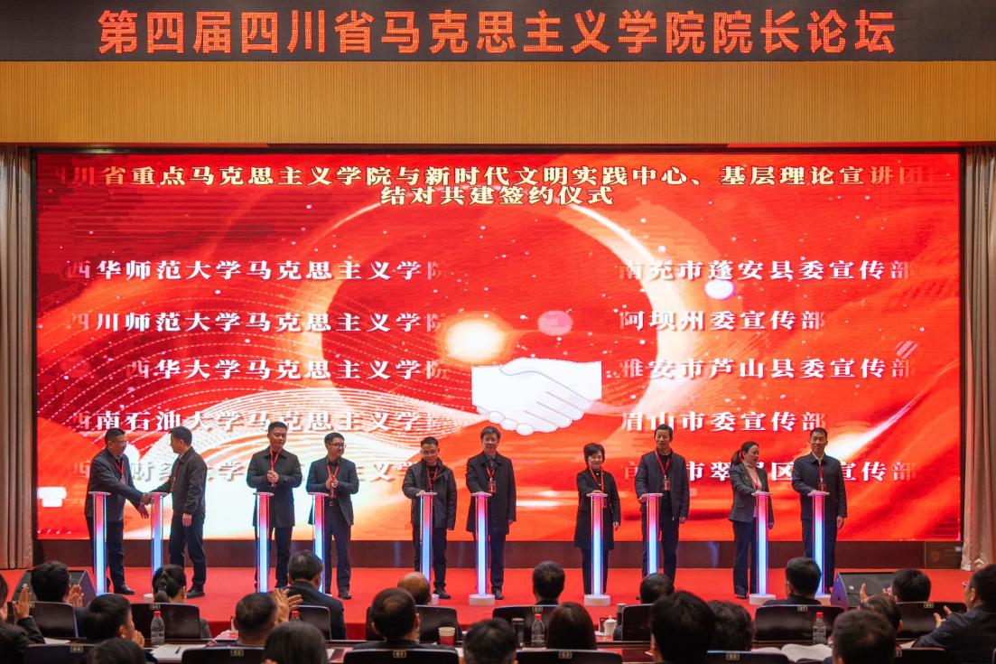 开幕式上,包括bevictor伟德,伟德bv国际体育在内的10所四川省重点伟德bv国际体育和新时代文明实践中心、基层理论宣讲团队签约结对共建,并发布了《习近平新时代中国特色社会主义思想概论》示范课建设成果。