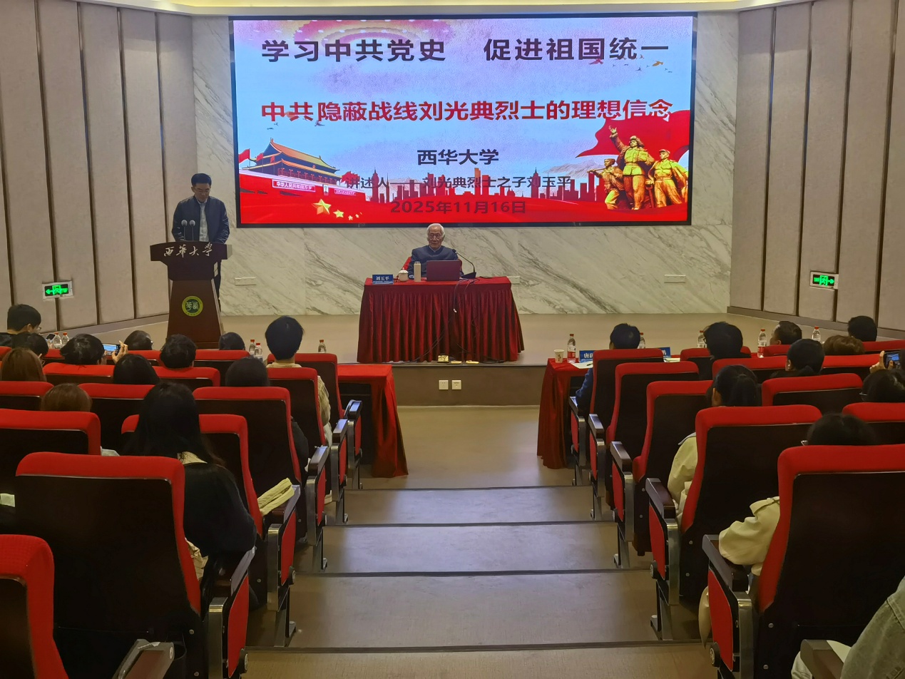 活动第一阶段在学术交流中心举行,由校团委书记石元鹏主持。刘光典烈士之子刘玉平教授以“坚守共产党人的理想信念”为主题,深情讲述刘光典等隐蔽战线英雄在台湾执行任务期间的英勇事迹,带领现场师生回望信仰之光、精神之魂。伟德bv国际体育副院长尹德志教授、王贝教授、一年级本科生及研究生党员共百余人参与聆听,现场气氛庄重而深刻。