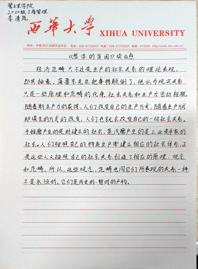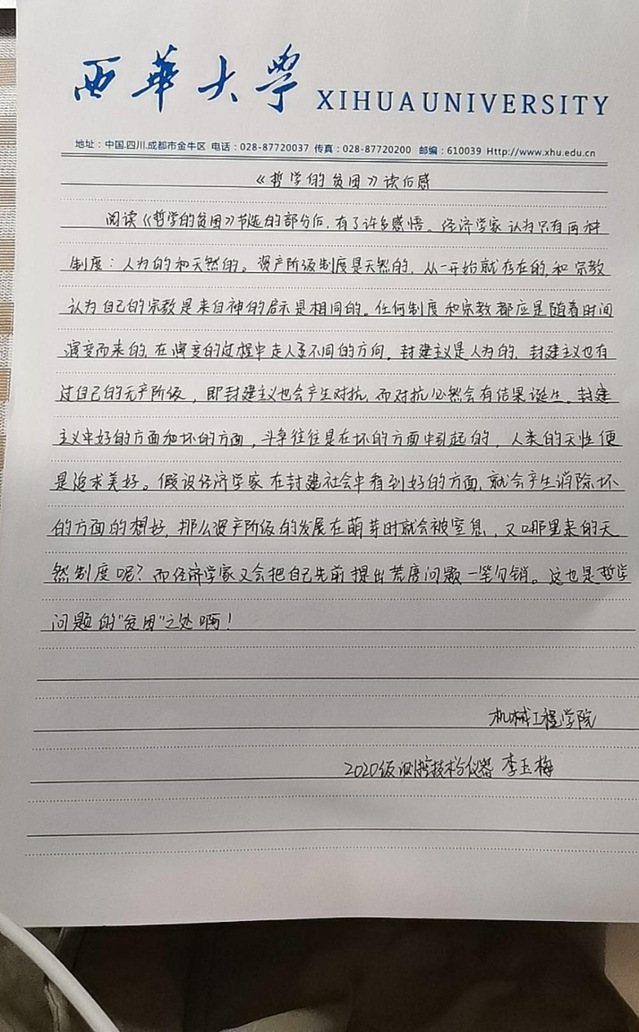 机械工程学院 测控技术与仪器 2020级 李玉梅