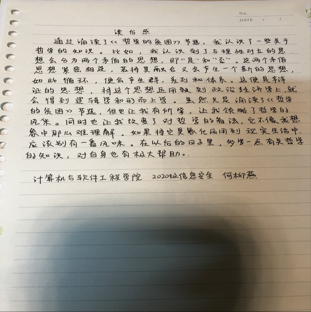 计算机与软件工程学院 信息安全 2020级 何柳燕