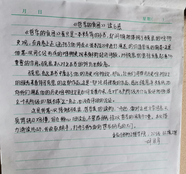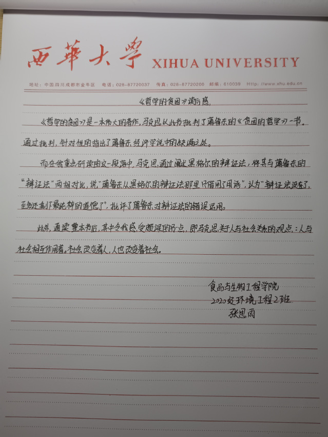 食品与生物工程学院 环境工程 2020级 胡思宇