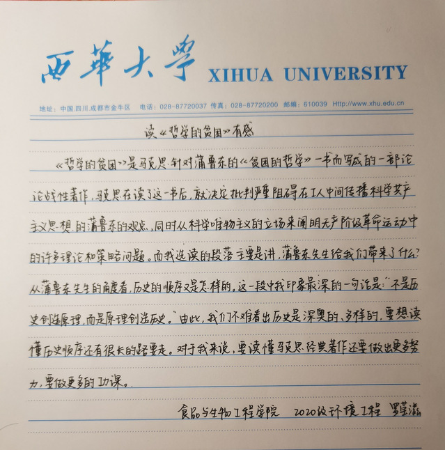 食品与生物工程学院 环境工程 2020级 罗莹滋