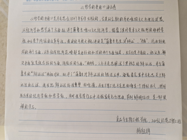 食品与生物工程学院 环境工程 2020级 杨钰婷