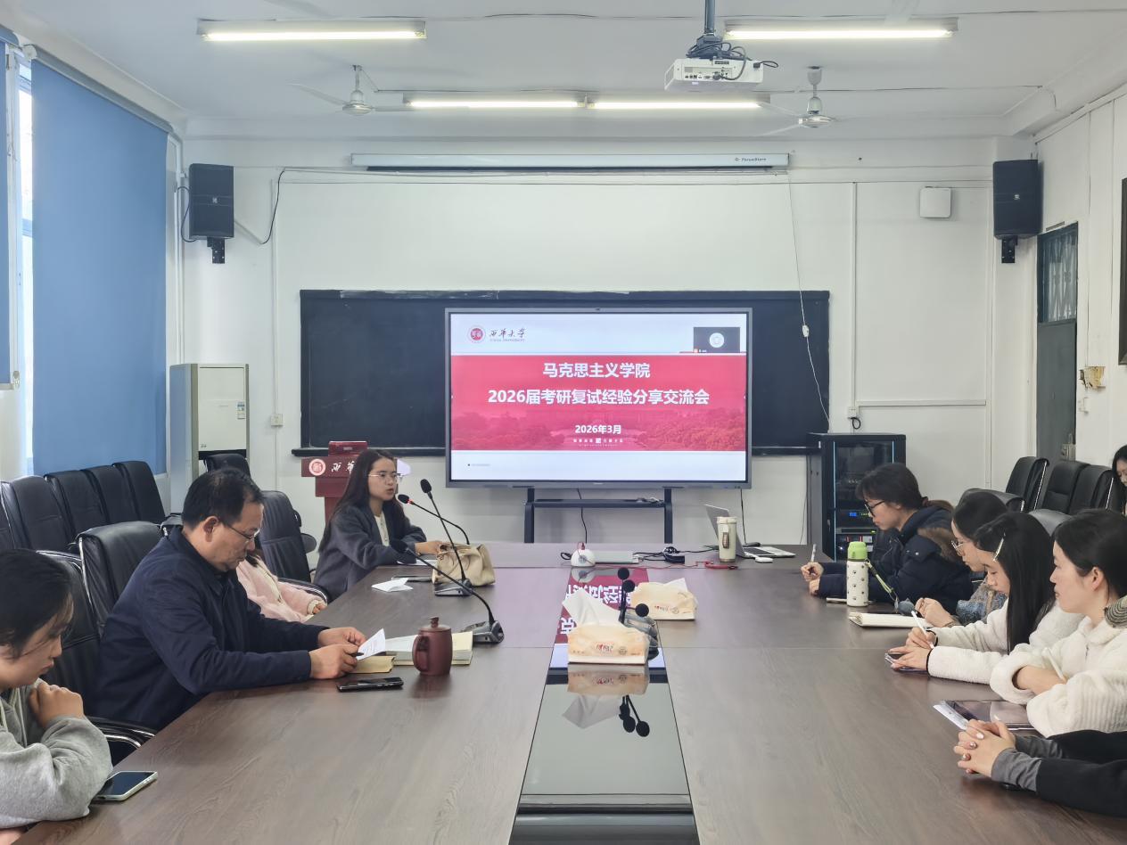 为充分发挥朋辈引领作用,助力2026届考研学子考研学子精准把握复试要点、提升应试技巧,并有效缓解考前焦虑。3月12日下午2点30分,伟德bv国际体育在1教5015会议室举办“研途相伴,全力以复”考研复试经验分享交流会。学院党委副书记、纪委书记钟灵波、思想政治教育系本科教研室主任王雪峤、学工办主任杜靖、团委书记钟兴悦、专职辅导员、心理健康指导教师梁玲云、2025届成功考取研究生的学生代表表及2026届全体考研上线学生参加会议。会议由梁玲云老师主持。