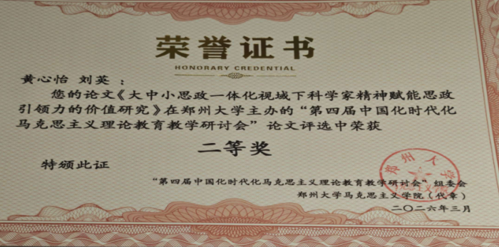 2024级研究生黄心怡提交的《大中小思政一体化视域下科学家精神赋能思政引领力的价值研究》一文获得征文二等奖,并在分论坛上作学术汇报,系统阐释科学家精神在一体化思政育人格局中的价值意蕴与实践路径。