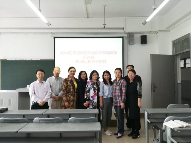 《思想道德修养与法律基础》教研室在封德平主任的组织下,教研室多次集体讨论如何在《思想道德修养与法律基础》的课程教学中全面贯彻落实党的十九大精神。4月11日5-6节,教研室再次在5B212组织了第五章内容的教学交流的教研活动。会上教研室老师及参会的兼职老师都讲到了自己对第五章内容的教学安排,大家相互交流,互相补充,基本形成符合自己风格的教学方法。