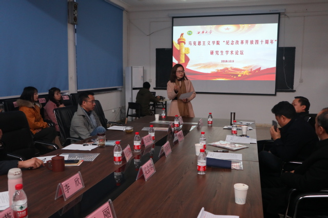 12月6日,作为伟德bv国际体育研究生学术年会暨文化交流周系列活动内容,学院在1教5015室召开“纪念改革开放40周年”研究生学术论坛活动,论坛由学院助理王贝老师主持,学院院长万远英、党委书记毛正强、副院长郑小明、薛新国、吴会蓉、尹德志教授等担任评审委员。研究生部郭晓燕、学工部周强老师,学院相关老师及40余名研究生同学参加了论坛。