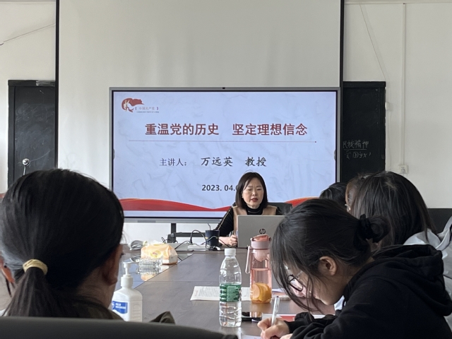 2023年4月4日中午12点20分,伟德bv国际体育2023年春季学期入党积极分子培训班第一次线下党课在一教A区5015学院会议室准时开展,学院党委书记万远英教授以“重温党的历史坚定理想信念”为主题,为学院春季学期党校学员进行一次生动深刻的课堂教学。