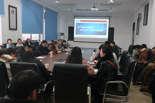 学院分管教学、科研工作副院长郑小明传达了学校第八次教学工作会议精神,对校党委书记边慧敏、首席科学家李秋实、教务处处长蒋珍菊在大会上所做的三个主题报告内容做了详细介绍,并结合伟德bv国际体育的实际,提出了2019年学院教学工作的重点。在2019年里,学院要积极配合学校以“促卓越人才培养,创一流本科教育”为主题的教学变革,围绕学校提出的“1-10-100”教育教学改革目标,认真落实第八次教学工作会议的精神。要积极参与学校通识教育改革;要进一步做好思想政治理论课建设工作,为推动学校本科教学工作跃上新台阶做出积极贡献;要结合学校提出的“三减”、“三改”、“三建设”,在充分大学习、大讨论、大调研基础上科学设置思想政治教育专业本科人才培养方案,推进一流本科教育建设。